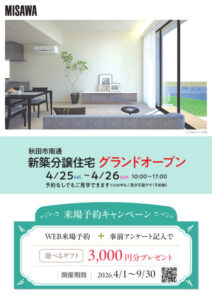 2026.04.10 ミサワホーム 4/25(土)~4/26(日)10:00~17:00 予約なしでもご見学できます。※GW中も見学可能です(予約制) 来場予約キャンペーン実施中4/1~9/30 ご家族の皆様でのご来場をお待ちしております。 詳しくは、こちらから↓ https://www.misawa.co.jp/fudosan/search/contents/code/detail/9534107